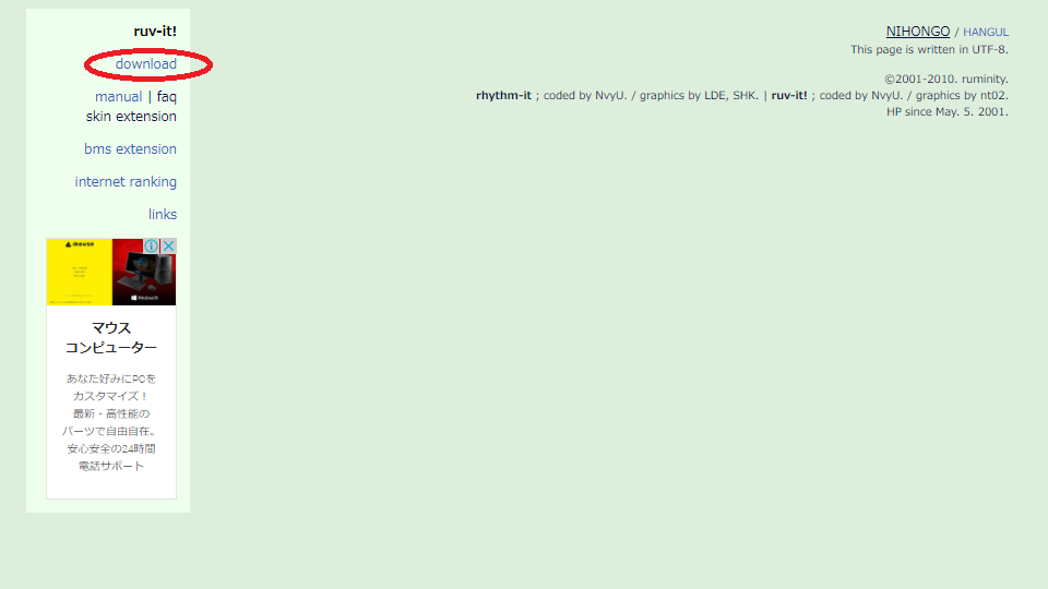 一応「ruv-it!」のサイトからもダウンロードリンクが貼り付けてありますが、英語で読めないといけないので