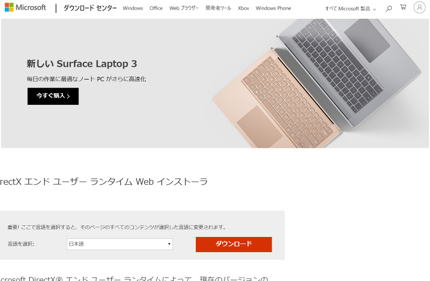上の画像の説明文(ピンクのまる)に書いてある通り、この時点ではまだ動きません。 DirectX(だいれくとえっくす)のランタイムがインストールされていない可能性が高いからです。